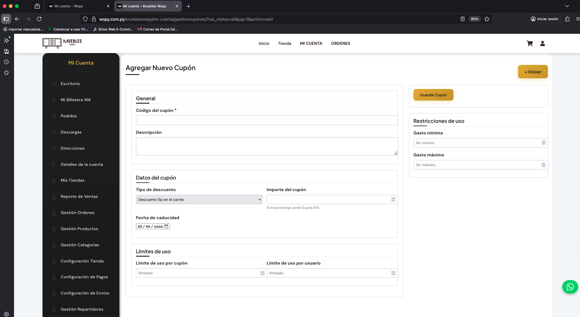 Define fecha de caducidad, gasto mínimo/máximo para aplicar el cupón.
